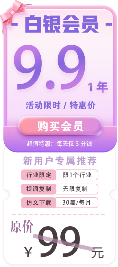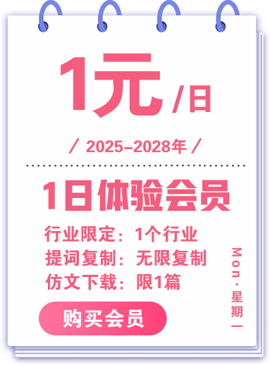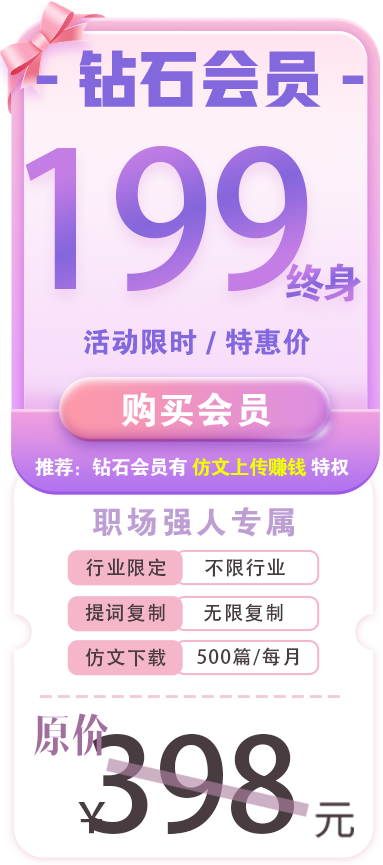 推荐:钻石会员。全行业永久解锁,每月享大量下载特权,仿文创作还有收益哦。